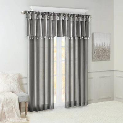 Give your home a decorator’s touch with our Lillian Faux Silk Valance with Beads. Made from a faux silk fabric, this elegant window valance features a DIY twist tab top finish that creates rich deep folds, combined with a beautiful bead trim for an alluring charm. Added lining offers more privacy and a fuller appearance, while the luxurious sheen and rich palette provide a touch of sophistication to your decor. Easy to hang, this tab top valance updates any decor into subtle glamour. Hanging instructions are included. Fits up to a 2″ diameter rod.