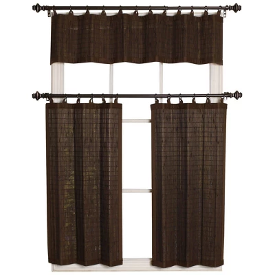Natural & inEnviroin Rayon from Bamboo Ring Top Tier features patented Easy Glide mounting system. Rust Resistant Dark Brown rings slide side to side for easy opening without the dangerous cords – pet and child friendly product. The look of Roman shade Rayon from Bamboo material and trimmed with 100% cotton fabric (Dark Brown). Clean with a vacuum or soft brush. This curtain covers 48in in width; color: Espresso. This product is meant for Indoor.