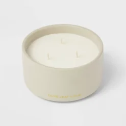14oz Lidded Gray Glass Jar Crackling Wooden 3-Wick Candle With Clear Label Rose + Cedar – Threshold™