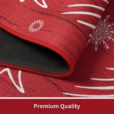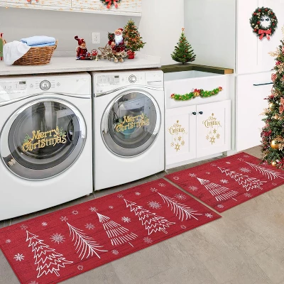 Festive Kitchen Decor: This Christmas kitchen mat set includes two washable rugs with decorative holiday-themed patterns, adding a cozy and seasonal touch to your kitchen or laundry area.