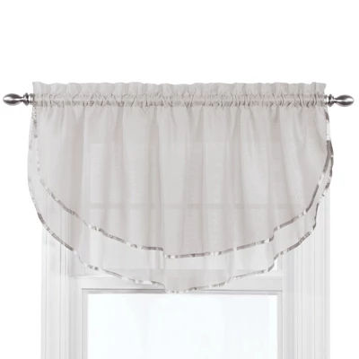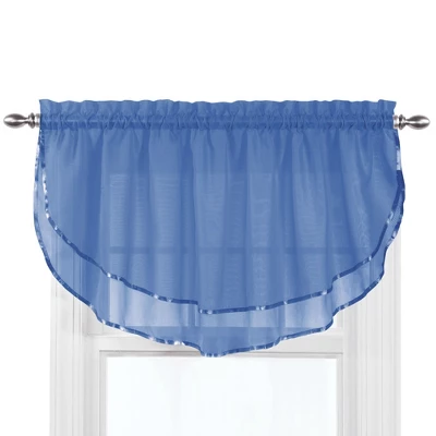 Now you can have a designer- look quickly and easily with this classic valance. The sheer fabric lets light in, while also adding privacy. Rod pocket top. Machine wash. Polyester; imported. Choose: Lilac, Sage, Beige, Aqua, Cobalt, White, Claret, Gold, Silver or Chocolate. Valance (24″L x 60″W).