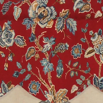 The gianna petticoat window valance by RLF Home goes beyond looking great with colorful flowers printed on a high-quality textured fabric. Contrast bottom fabric. Valance fits windows up to 48″ in width; you may use multiples for wider windows. Valance will look great flat or gathered on your window. A 3″ Rod pocket will fit perfectly on a 2-1/2″ continental rod. But can be used with a regular 3/4″ curtain rod or decorative pole up to 1-3/8″ diameter. Measures: 50″ x 15″. Colors: Red, White, Natural, and Spa.