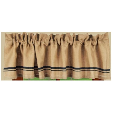 The Burlap Stripe Valance features a lovely, simple khaki color. What sets it apart is the black stripe accent along the bottom edge. Subtle yet striking, this is a charming accent for your country window decor!.