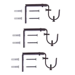 - Includes: one telescoping curtain rod with finials, two brackets, one center support, screws, drywall anchors, and installation instructions