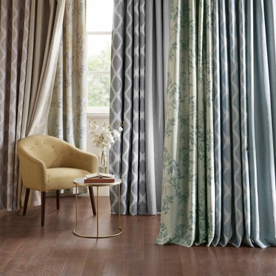 With a fun fresh take on energy efficiency, our Lila Printed Botanical Blackout Panel is the perfect update to liven up any room. Featuring an updated botanical design printed in fresh and neutral hues, this blackout window panel is made from a textured polyester slub base fabric creating texture and dimension for a casual look. A one pass foamback finish with additional bonding on the reverse enhances the panel to buffer most sunlight, while also creating a significant barrier to reduce outside noise. Silver grommet top finish makes this panel easy to hang, open, and close throughout the day; while fitting up to a standard 1.25″ diameter rod. Perfect for home offices, family rooms, and bedrooms, this blackout panel provides a high-level of privacy and considerable energy savings in a trend-setting style. Lighting level: Heavily Shaded Ambiance.