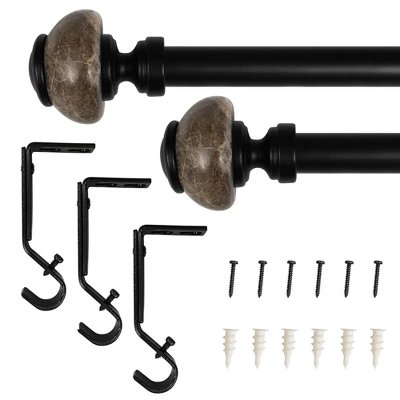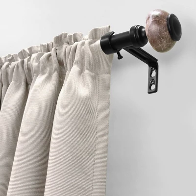 - Includes 3/4 in. telescoping pole with Natural Marble finials in Matte Black finish