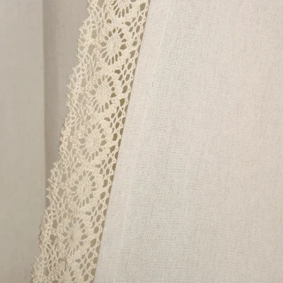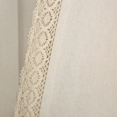 - Dreamy Ambiance: Create a dreamy and romantic ambiance in your space with this elegant set of two window panels. It features a delicate lace trim that decorates the solid colored linen-look of this panel, adding a feminine touch.