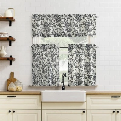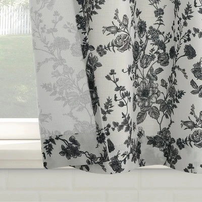 Add whimsical charm to your kitchen or other small windows with the traditional floral tonal print design of Elara Kitchen Curtain Tier Pairs from No. 918. Gently filters light while enhancing privacy. Rod pocket design allows for easy hanging on a standard curtain rod up to 0.75″ in diameter. Machine washable. Ideal layering piece for added privacy and light control. Tier pair includes two (2) tier curtain panels. Set includes two black tiers measuring 54″ width by 36″ length. Coordinating valances or swag pairs are sold separately. Measure carefully before selecting your desired size. Rod not included. Machine wash cold on gentle cycle. Use only non-chlorine bleach when needed. Tumble dry on low heat, using a cool iron as needed.