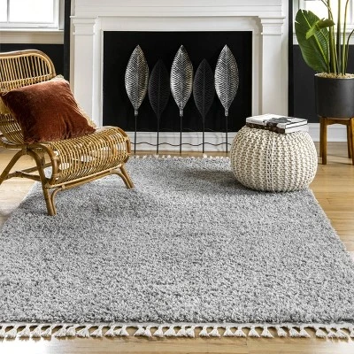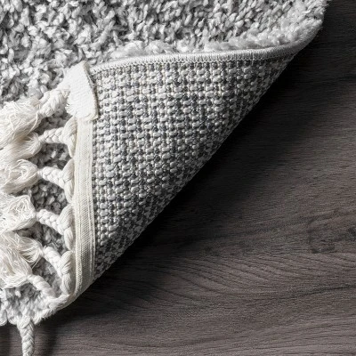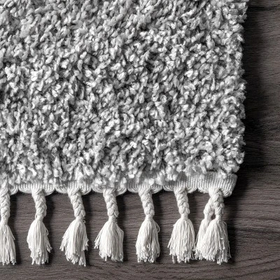 This cozy, solid, shag area rug can perfectly compliment any existing decor from traditional to contemporary. This plush pile is like a mini spa for your toes and the braided tassels on either end add a touch of charm. Machine made in Turkey from synthetic materials this rug is built to last.
