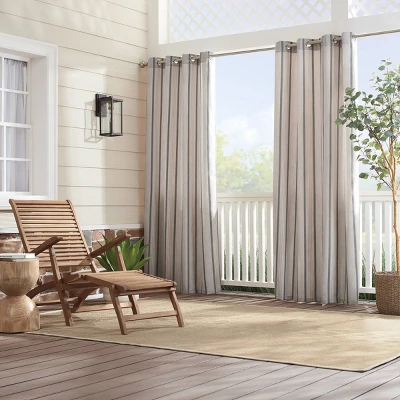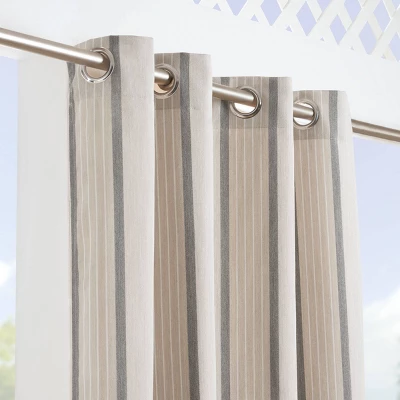 Sunbrella Cove Striped Grommet Indoor/Outdoor Curtain Panel Pebble