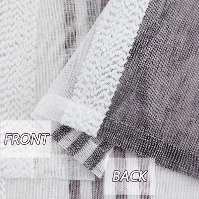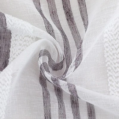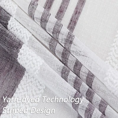 Enhance the elegance of your small windows with our Vertical Stripe Linen Textured Voile Sheer Short Kitchen Cafe Curtains. Made of premium faux linen textured fabric, these curtains have a natural drape and a double-sided yarn dyed weaving technology that exudes an elegant and comfortable atmosphere. The sheer style effectively filters harsh light while allowing natural light to enter, providing both privacy and adequate lighting. With a blend of boucle and linen stripe style, these short kitchen curtains add a modern touch to any room. Suitable for kitchen, bathroom, laundry room, cafe, living room, studio, and more. These curtains are easy to care for, as they are machine washable in cold water on a gentle cycle, and can be tumble dried on low. If needed, they can be cool ironed. Add a touch of elegance and practicality to your windows with our Vertical Stripe Linen Textured Voile Sheer Short Kitchen Cafe Curtains.