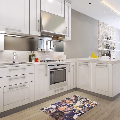 Bring this modern floral anti-fatigue Mat to any place in your home, from the entryway to the bathroom, on to the kitchen and laundry room. This Mat makes great use for high foot traffic areas without breaking a sweat. The Rubber backing enables it to stay in place keep durable for your usage.