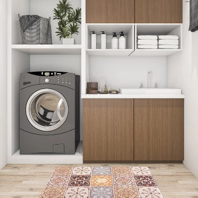 - Multi-purpose:Kitchen mats widely used for home decor,indoor front welcome mat,kitchen rug,laundry room,standing desk,back doors,garage,office. Nonskid backing holds the mat in place for extra safety.